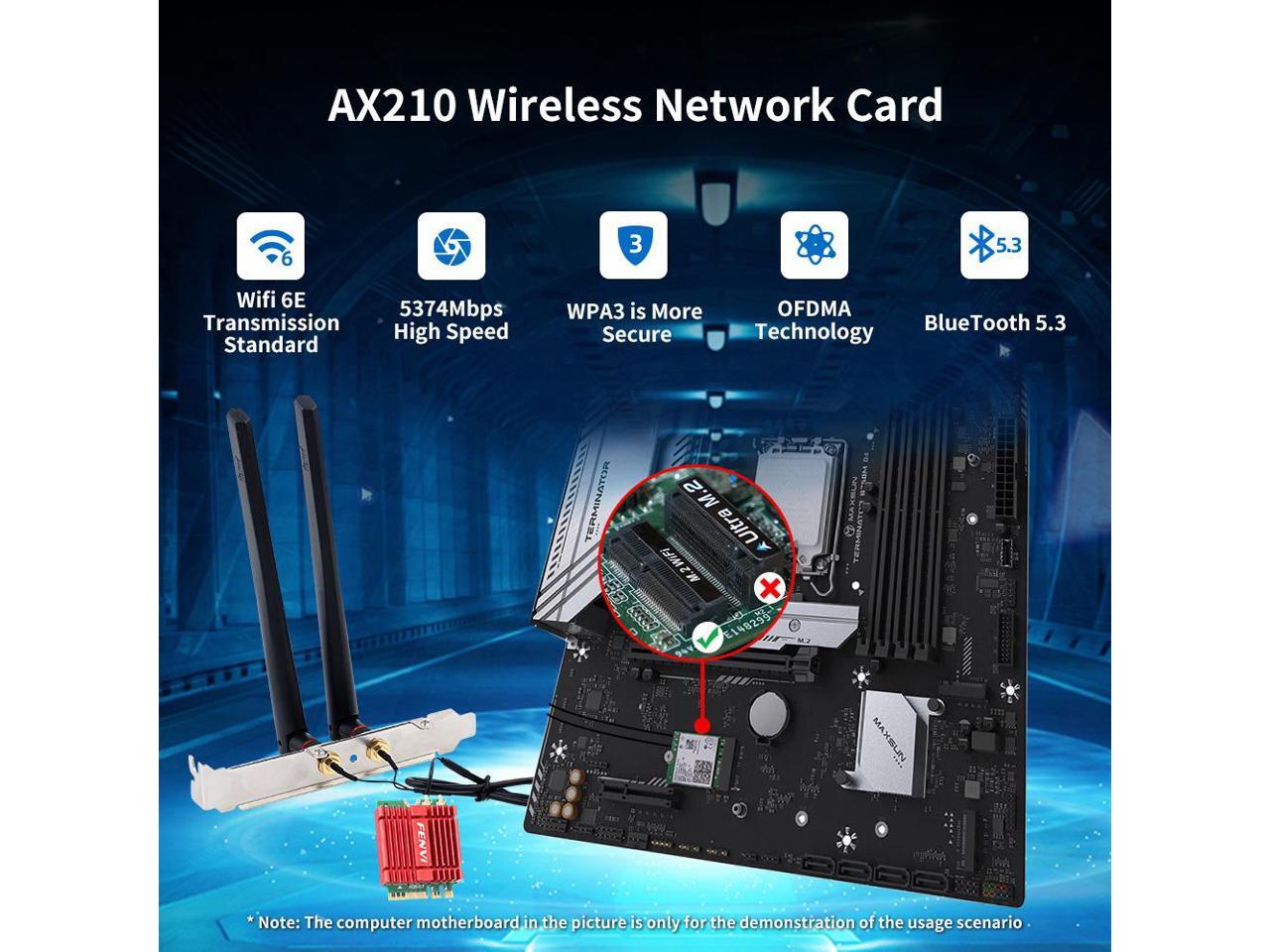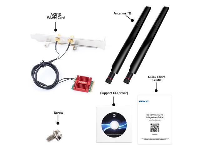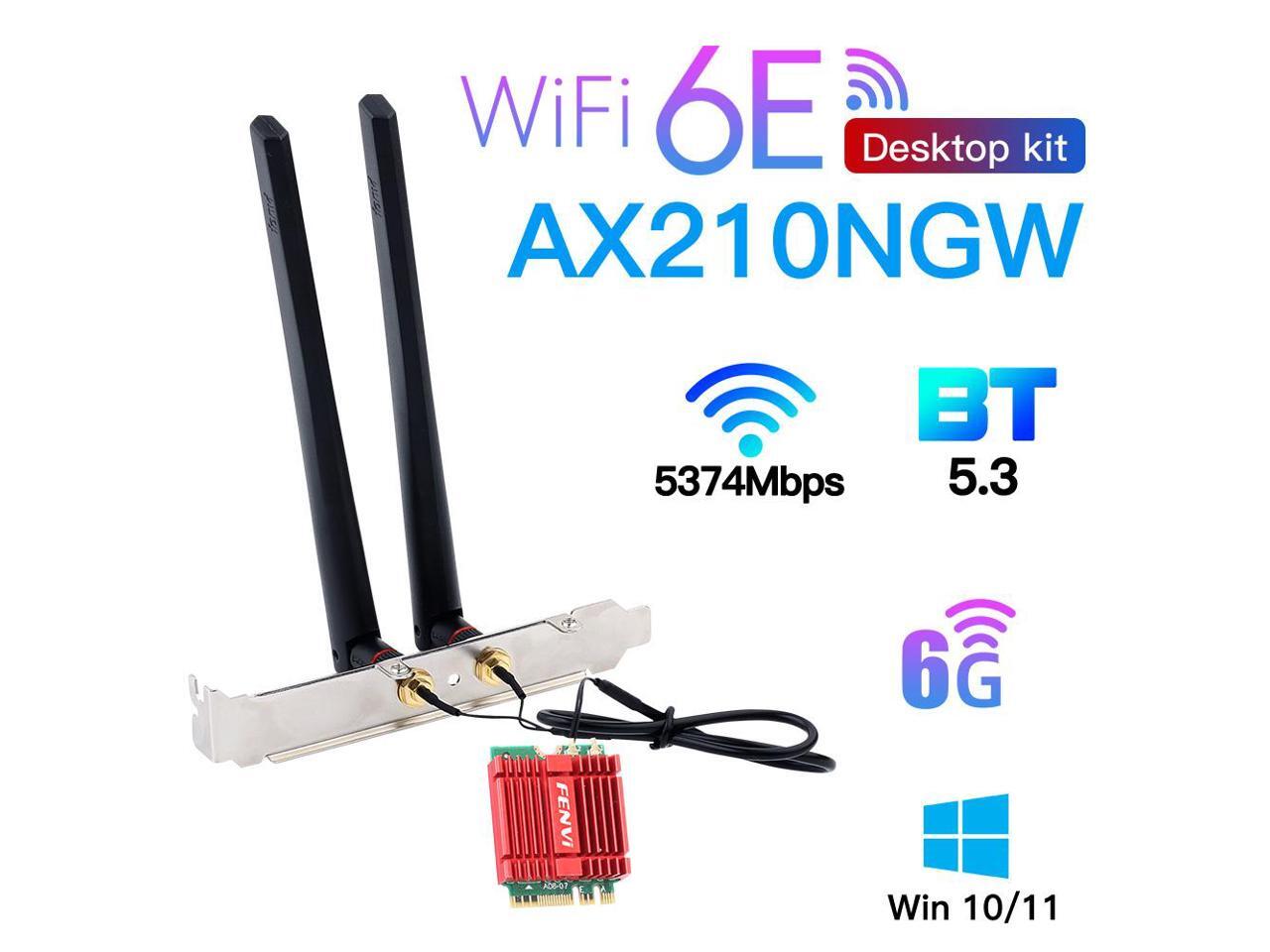 Fenvi FV-AXE5400NG Wi-Fi 6E AX210 M.2 Desktop Kit 5400Mbps Wireless Adapter Bluetooth 5.3 Tri-Band 2.4G/5Ghz/6Ghz M.2 2230 Key E With WiFi 6E Intel AX210NGW 802.11ax/ac MU-MIMO WPA3 For Windows 10/11