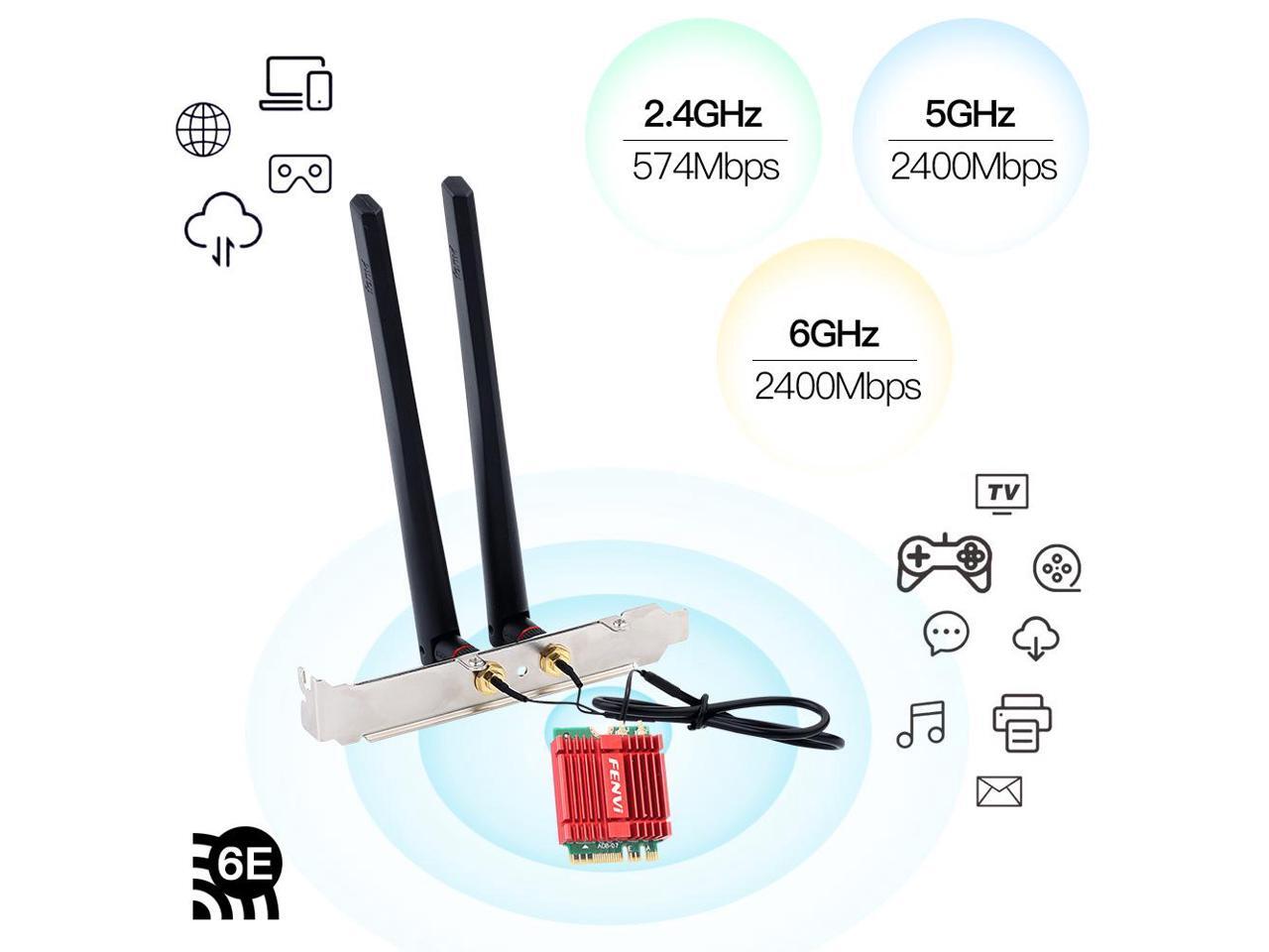 - WIFI 6E FV-AXE5400NG Based on Intel AX210 chipset, WiFi 6E AX210 Brings WiFi into 6GHz, Update your wifi to Tri-Band. Max Speed up to 574Mbps @2.4GHz + 2400Mbps @5GHz +2400Mbps @6GHz. 2.4GHz for the long range, 5GHz for the high speed, 6GHz for the high speed,