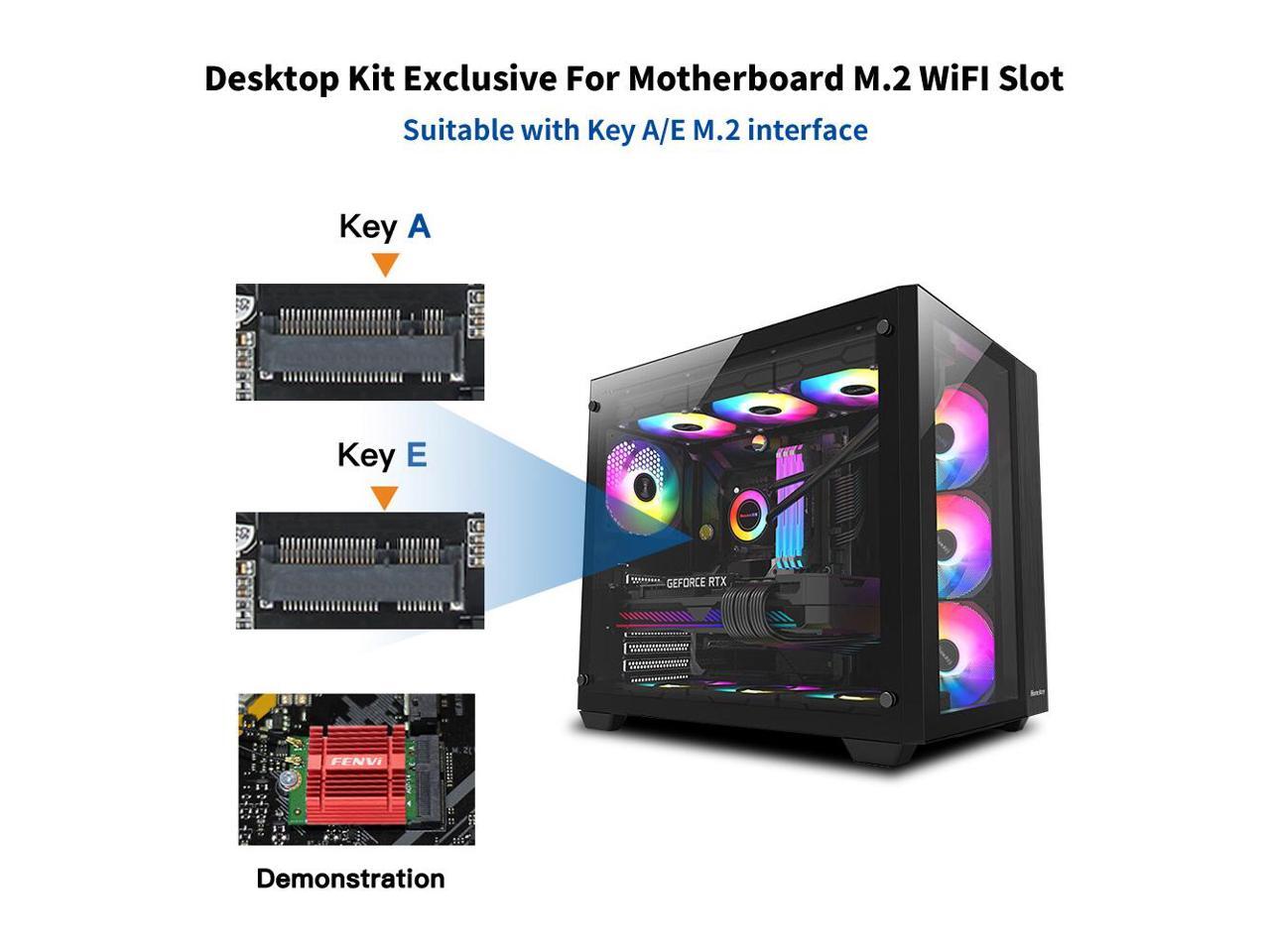 - NGFF M.2 2230 Interface: Enables Key A or E M.2 socket to attach the module. (Not for Key M and B, Key M and B is used in SSD). Please make sure there is M.2 Connector in your Desktop.
