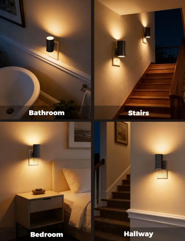 Auto Dusk to Dawn Sensor for True Hands-Free Safety-- Features a high-precision light sensor that automatically activates a soft glow at dusk and shuts off at dawn. Delivers worry-free, all-night safety lighting for common areas and designated sleeping spacesno switches, no buttons, no forgotten lights.