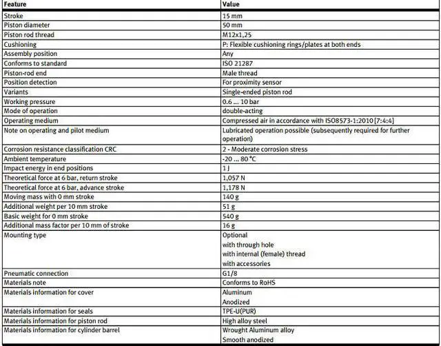 FESTO ADN-50-15-A-P-A Compact cylinder 536312 Stroke 15 mm