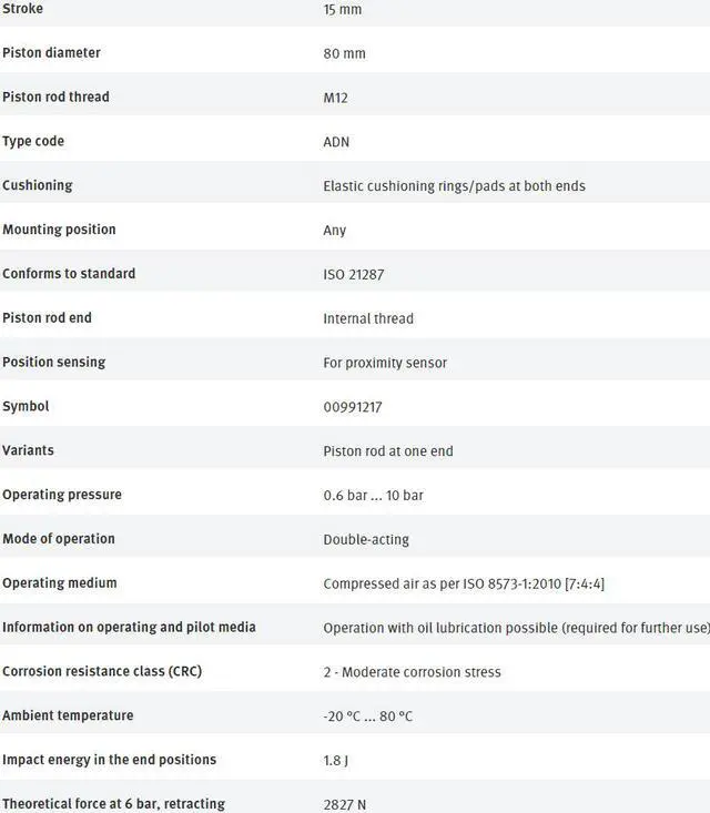 FESTO ADN-80-15-I-P-A 536364 Compact Air Cylinder New