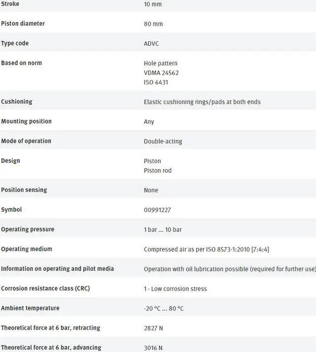 • FESTO ADVC-80-10-I-P 188312 Short-stroke Cylinder New