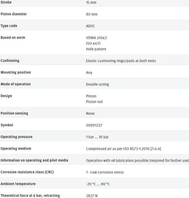 • FESTO ADVC-80-15-I-P 188313 Short-stroke Cylinder New
