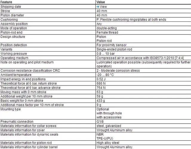 FESTO ADVU-40-40-P-A Compact Cylinder 156546 Stroke 40 mm