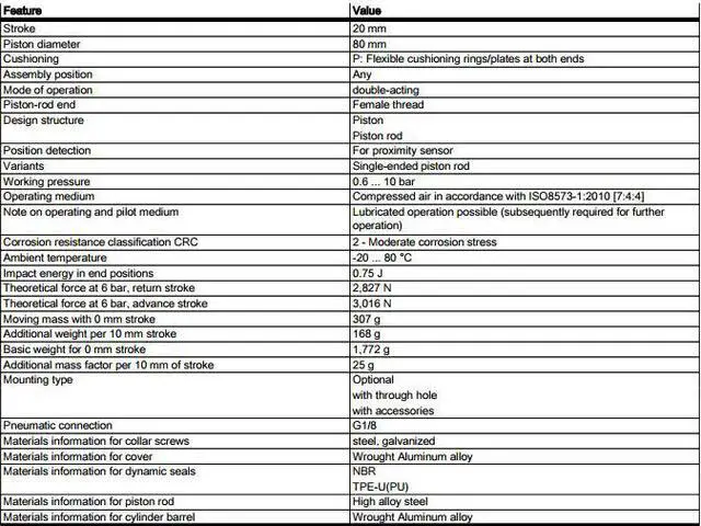 FESTO ADVU-80-20-P-A Compact Cylinder 156570 Stroke 20mm