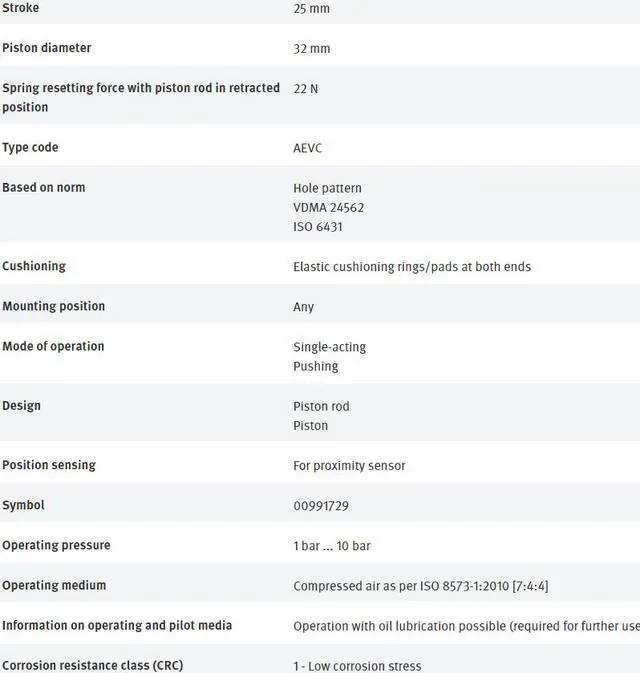 FESTO AEVC-32-25-A-P-A 188200 Short-stroke Cylinder New