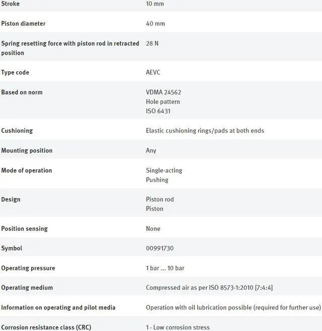 • FESTO AEVC-40-10-A-P 188230 Short-stroke Cylinder New