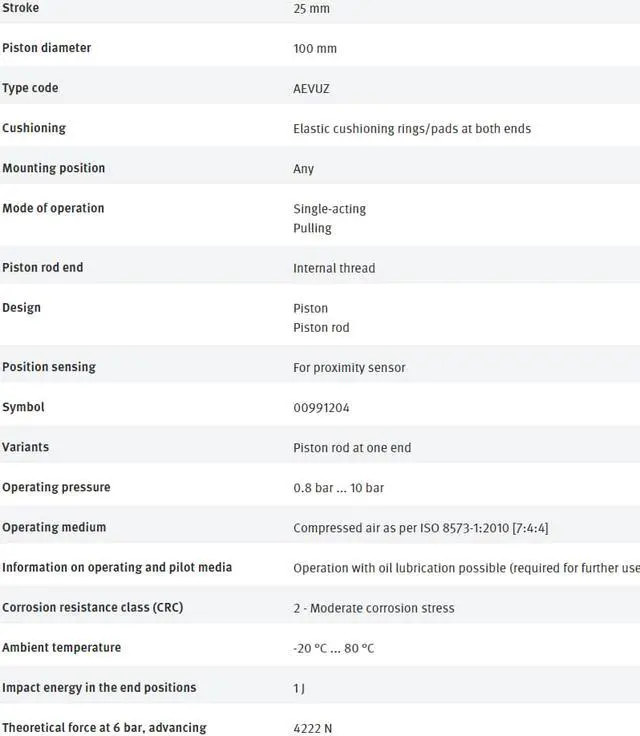 • FESTO AEVUZ-100-25-P-A 157251 Compact Air Cylinder New