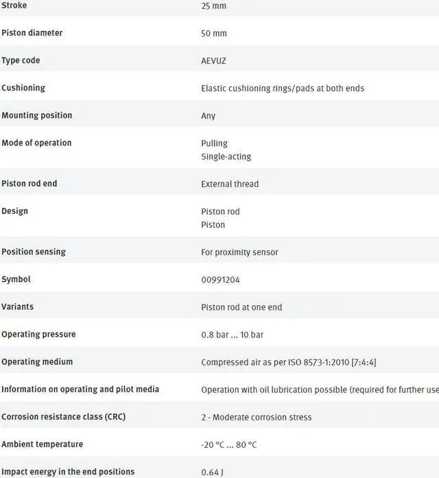 FESTO AEVUZ-50-25-A-P-A 157285 Compact Air Cylinder New