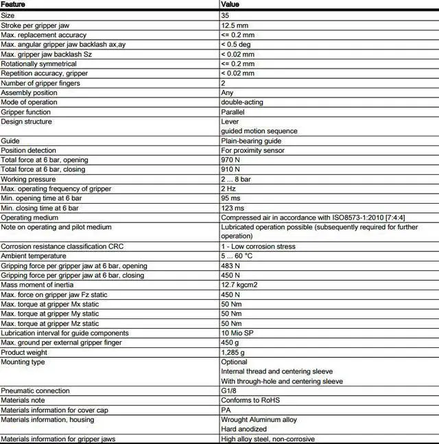 FESTO DHPS-35-A Parallel Gripper 1254052 12.5mm