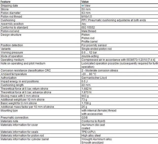 FESTO DNC-63-50-PPV-A Standard Cylinder 163403 Strokr 50 mm