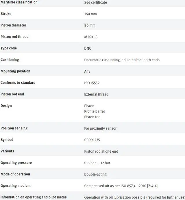 FESTO DNC-80-160-PPV-A 163439 ISO Cylinder New