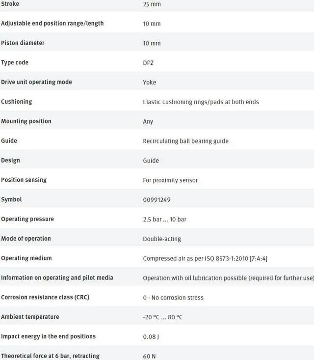 • FESTO DPZ-10-25-P-A-KF 162002 Dual Piston Rod Cylinder New