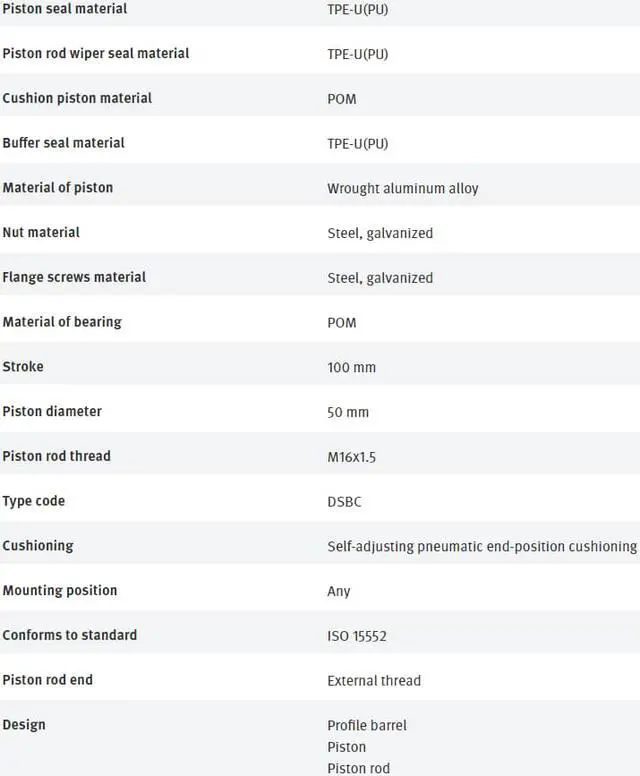 FESTO DSBC-50-100-PPSA-N3 1376307 ISO Cylinder New