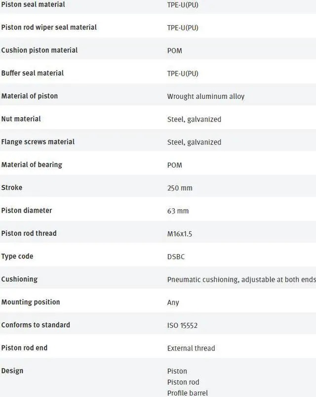 FESTO DSBC-63-250-D3-PPVA-N3 3657872 ISO Cylinder New