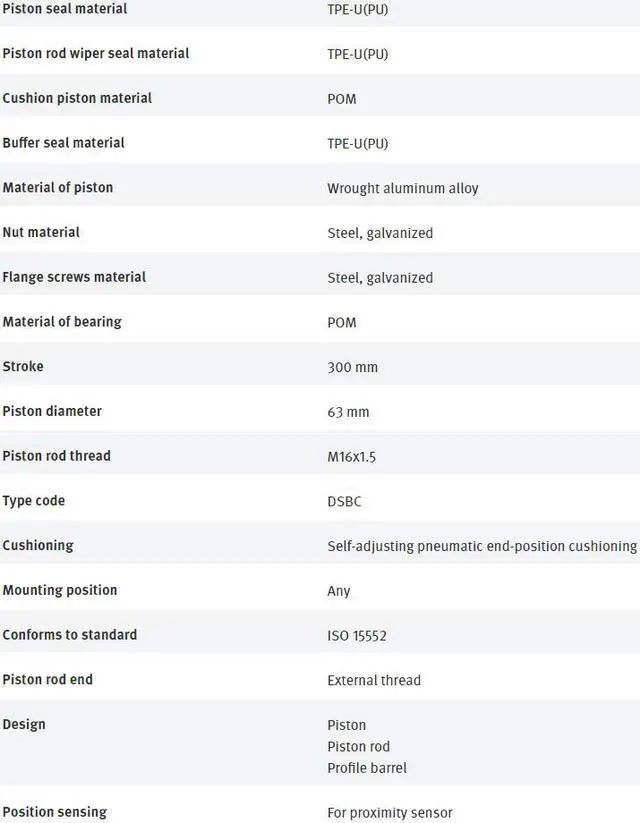 FESTO DSBC-63-300-D3-PPSA-N3 3657825 ISO Cylinder New