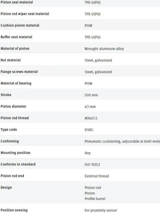 • FESTO DSBC-63-500-PPVA-N3 1383589 Compact Air Cylinder New