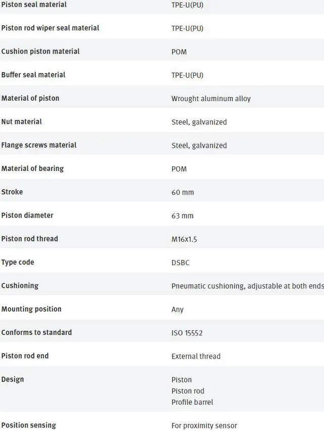 • FESTO DSBC-63-60-D3-PPVA-N3 3657864 ISO Cylinder New