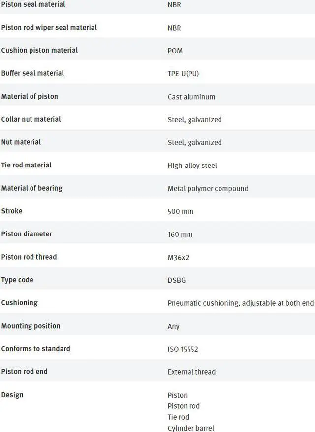• FESTO DSBG-160-500-PPVA-N3 2029473 ISO Cylinder New