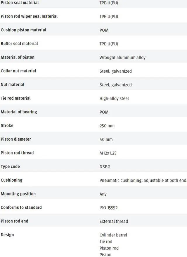 • FESTO DSBG-40-250-PPVA-N3 1646555 ISO Cylinder New