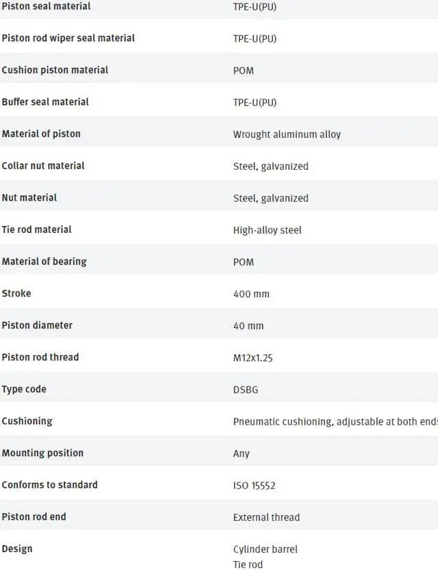 • FESTO DSBG-40-400-PPVA-N3 1646557 ISO Cylinder New