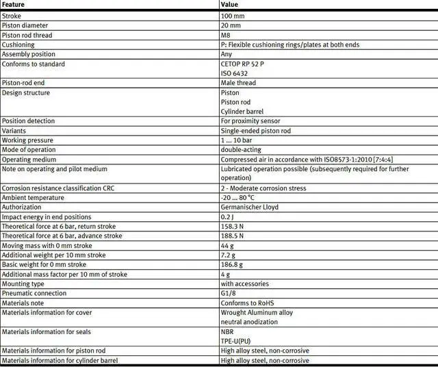 FESTO DSNU-20-100-P-A Standard Cylinder 19212 Stroke 100 mm