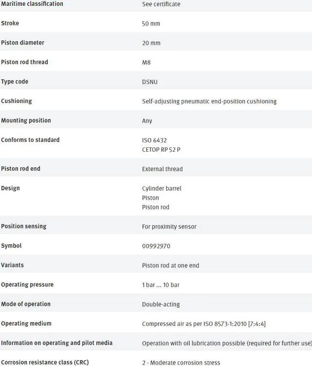 • FESTO DSNU-20-50-PPS-A 559273 ISO Cylinder New