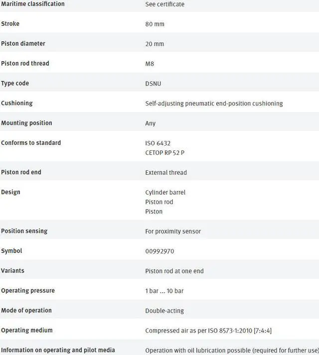 • FESTO DSNU-20-80-PPS-A 559274 ISO Cylinder New