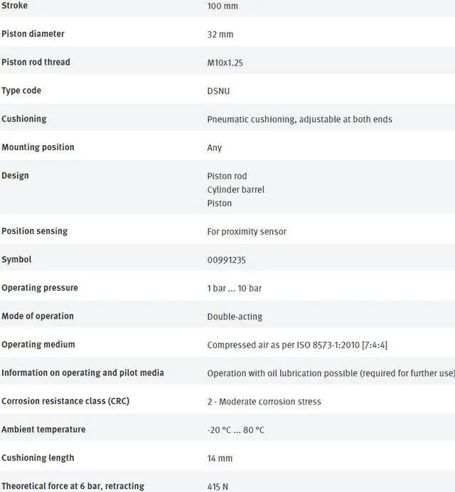 • FESTO DSNU-32-100-PPV-A 196024 Round Cylinder New