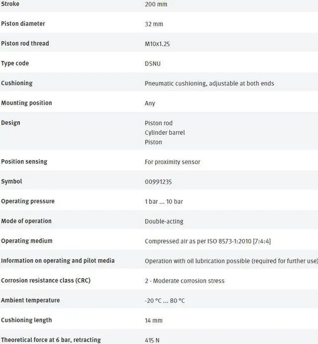 FESTO DSNU-32-200-PPV-A 196027 Round Cylinder New