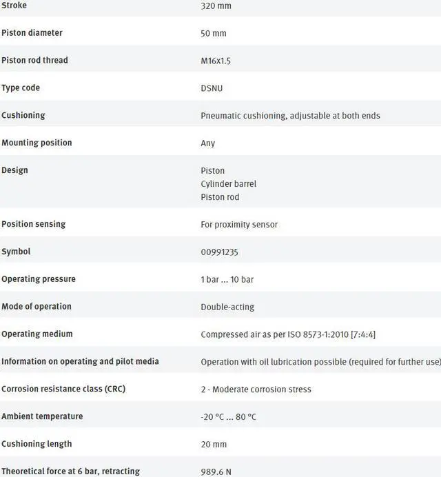 FESTO DSNU-50-320-PPV-A 196049 Round Cylinder New