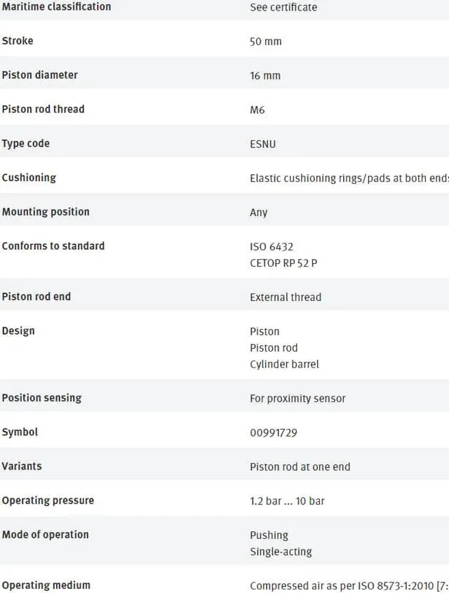 FESTO ESNU-16-50-P-A 19265 ISO Cylinder New