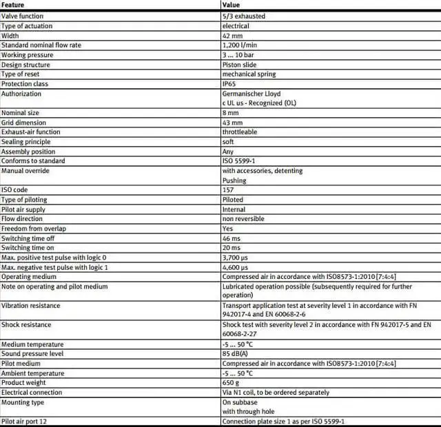 FESTO MN1H-5/3E-D-1-C Solenoid Valve 159683 Width 42 mm