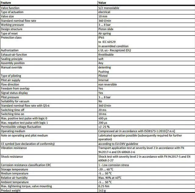 FESTO VMPA1-M1H-M-M7-PI Solenoid Valve 533376 400 µs