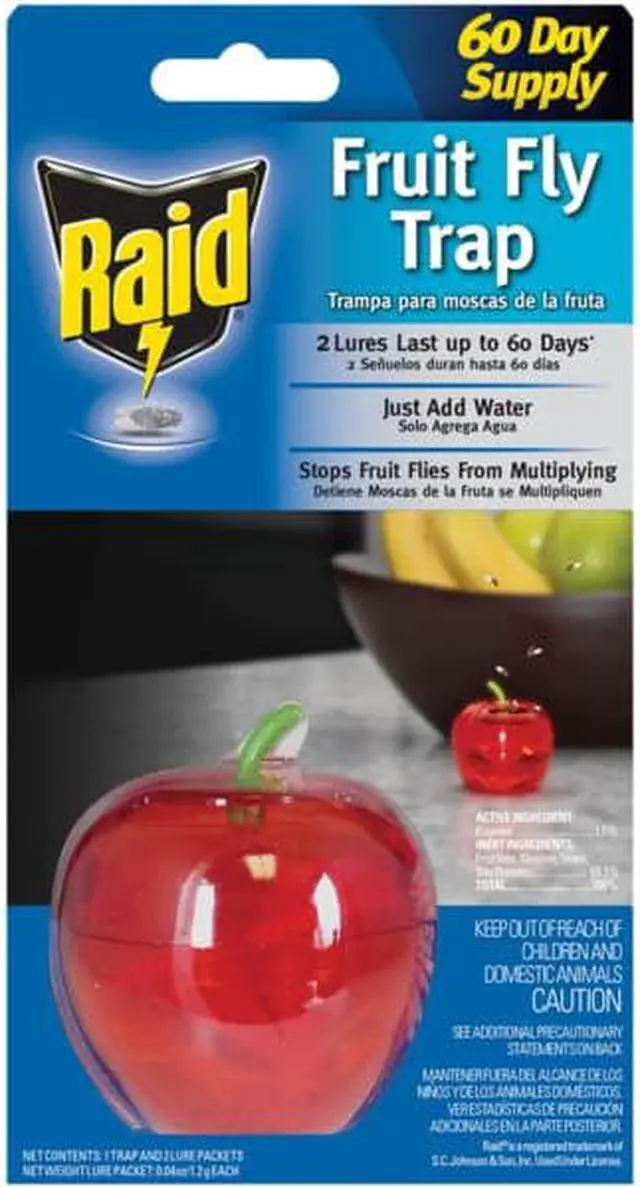 This Fruit Fly Trap is made by RAID, a recognized and trusted brand among pest control. The Fruit Fly Trap is discreet while attracting and then killing fruit flies without insecticides by using a food lure. It's safe to use around the kitchen and lasts up to 30 days.