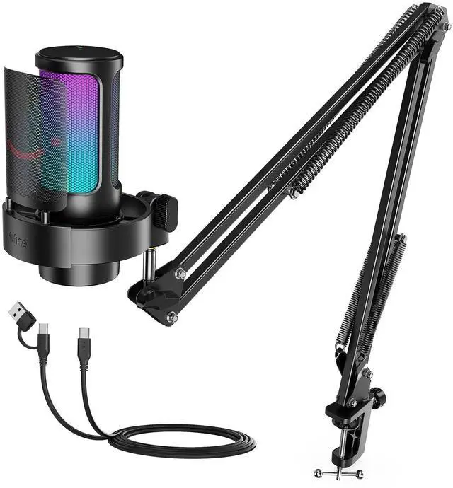 USB Gaming Microphone Kit, PC Streaming Mic with RGB Lights, Mute, Gain Knob, Metal Boom Arm for Recording Podcast, Condenser Computer Microphone Set Compatible with PS4/PS5-AmpliGame A8T