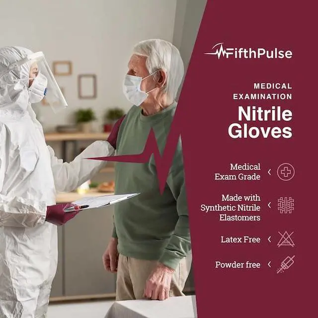 FifthPulse Nitrile Gloves can handle it all, in every setting! Whether the task is medical, industrial, or culinary, our gloves have you and your hands covered! Our vibrant Burgundy nitrile gloves protect your hands from harmful viruses, bacteria, harsh chemicals and more. They are NOT made with latex, rubber, or powderperfect for sensitive skin types and those with latex allergies! FifthPulse Nitrile Gloves are thick, durable, and come in a variety of colors. For even the toughest and messiest jobs out there, whether at work at home, FifthPulse Nitrile Exam Gloves are up to the task.