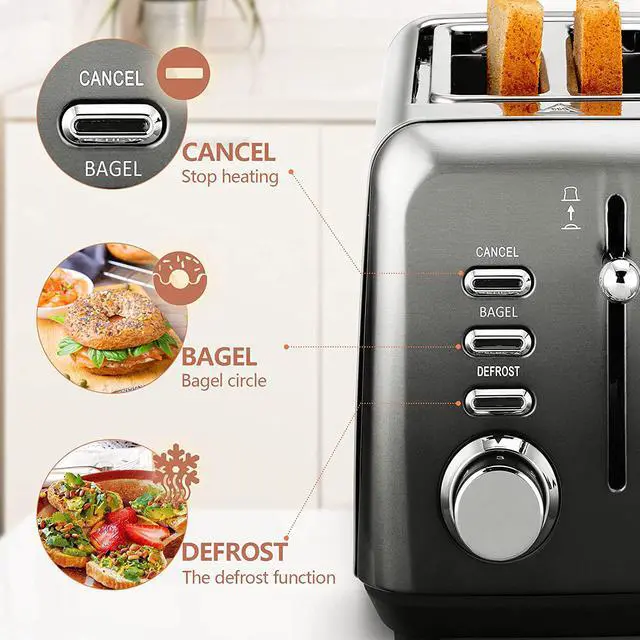 - The toaster has Bagel, Defrost and Cancel button, these buttons for easy convenient, customized toasting.