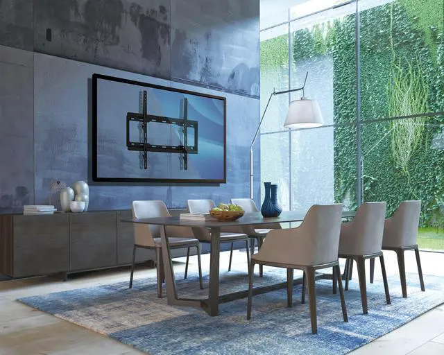The FF64 is sleek, stylish, and slim in design. A high quality black matte finish gives a modern look and its slim depth places your display just 1” from the wall, making your TV the focal point of the room while hiding the hardware. The FF64 flat mount is best utilized in areas with a set viewing angle where the display is to remain fixed in place and screen glare is not an issue. If your space has a higher or multiple viewing angles, we recommend a tilt or articulating mount instead.