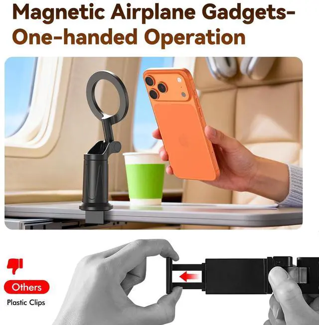 Upgraded Super Strong MagnetAirplane gadgets phone holder features 20 reinforced N55 magnets, ensuring your phone stays firmly attached and won't fall. Provides secure attachment and protection for your phone on airplanes and trains.