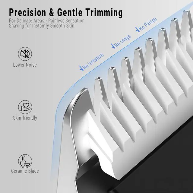 2-in-1 Versatile Trimming: Dual swappable ceramic & foil blades for smooth, irritation-free grooming. 7200RPM high-power motor glides over sensitive areas, enabling precise trimming for all hair lengths & body parts.