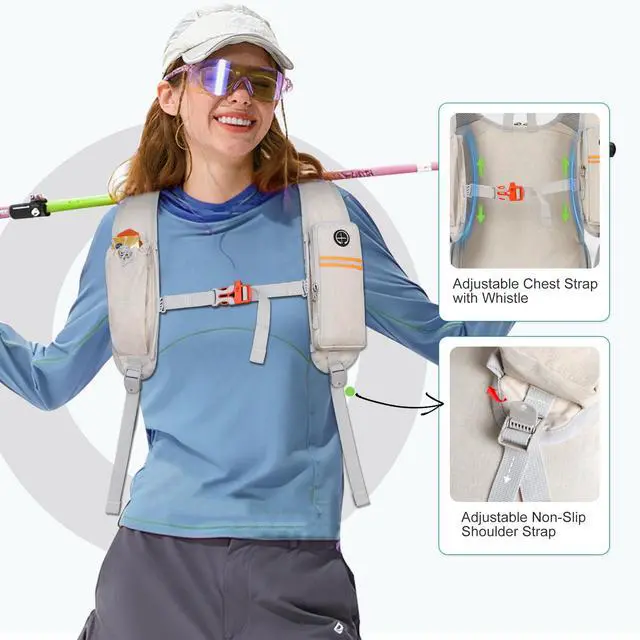 Quick-Access Shoulder Pockets: Stay organized on the go! The ergonomic shoulder straps feature a zippered pocket (fits phones up to 7) and a stretchy cord pouch for keys, lip balm, or transit cards. No more awkwardly removing your outdoor backpack mid-hikegrab hiking essentials instantly. Designed for active lifestyles, these pockets keep valuables secure yet within reach during biking, skiing, or city adventures.