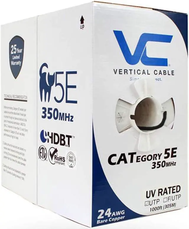 Cat5E Bulk Cable - Vertical Cable In 24AWG 350MHz UV-Rated