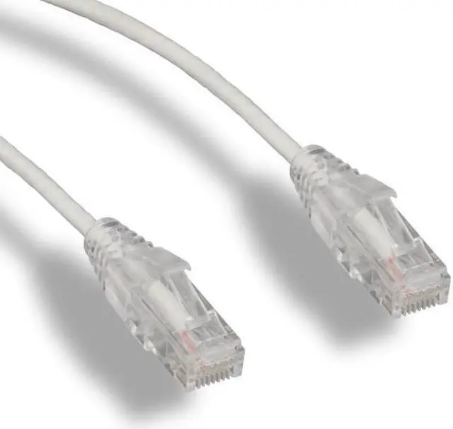 FireFold C6SLIM-3-WHT Cat6 Slim Ethernet Patch Cable White 3ft, 28 AWG 4 Pair UTP Stranded Bare Copper Ethernet Wire Snagless Translucent Clear Boot