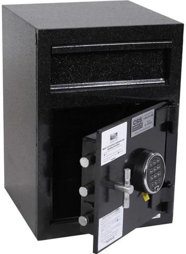 | Features | Designed to protect cash receipts, deposits slips, keys and other valuables against theft at point of purchase. Programmable digital lock with time delay. Anti-fish hopper prevents contents from being removed. |