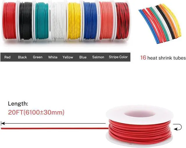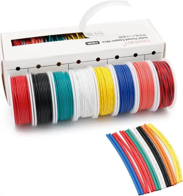 The Firmerst 18 AWG Solid Core Electrical Wire Set is an essential component for your home improvement and industrial wiring needs. Manufactured by Firmerst, this high-quality wire set is designed to meet UL 1007 specifications, ensuring safety and reliability in various applications. The set includes eight vibrant colors of solid core wirered, black, green, white, yellow, blue, salmon, and stripeeach measuring 20 feet (6 meters) in length, providing ample material for diverse projects. Complementing the wires, the package includes 16 heat shrink tubings (2 pieces per color), offering a comprehensive solution for your wiring requirements.
