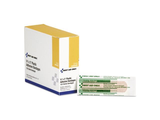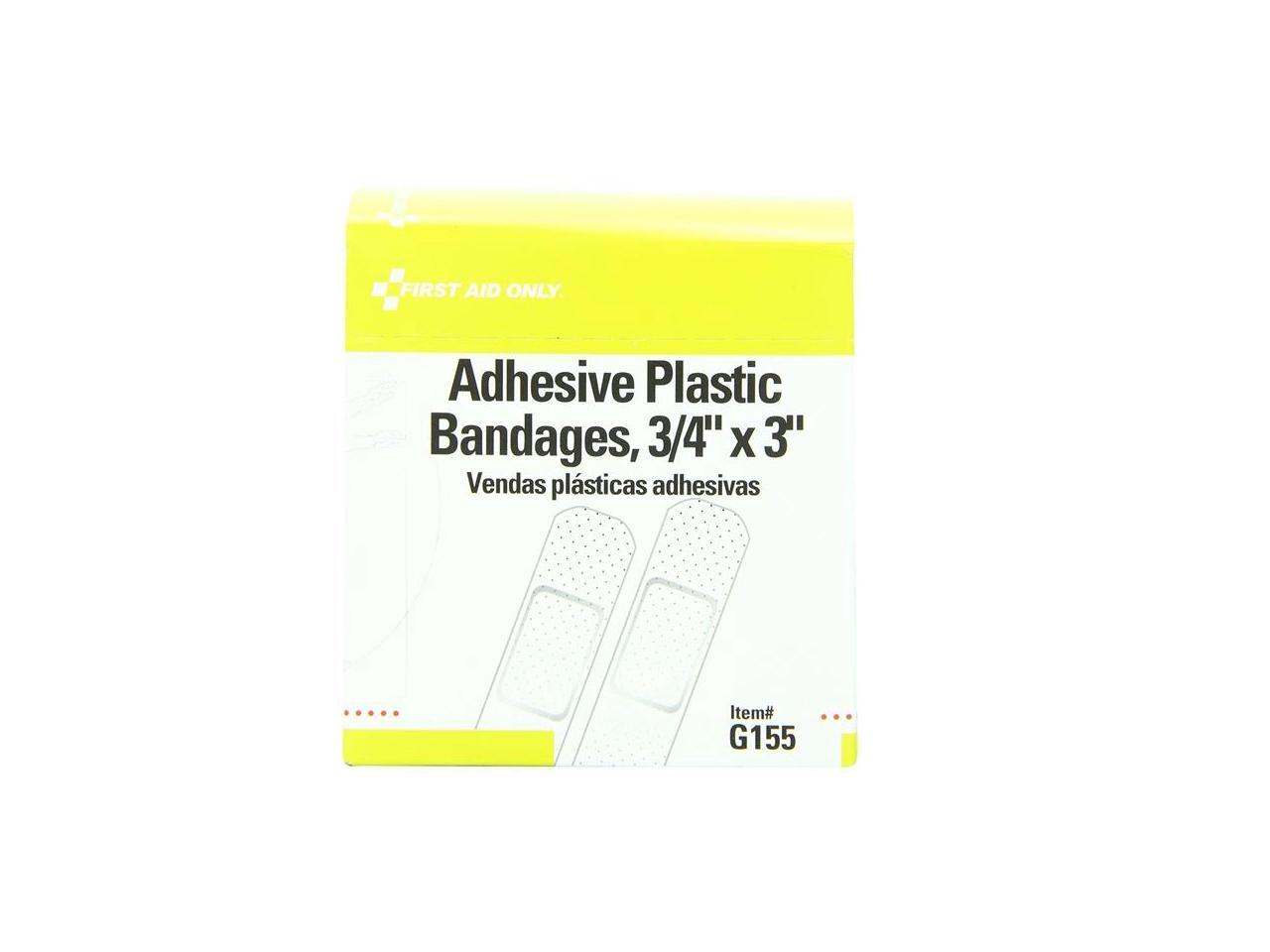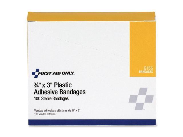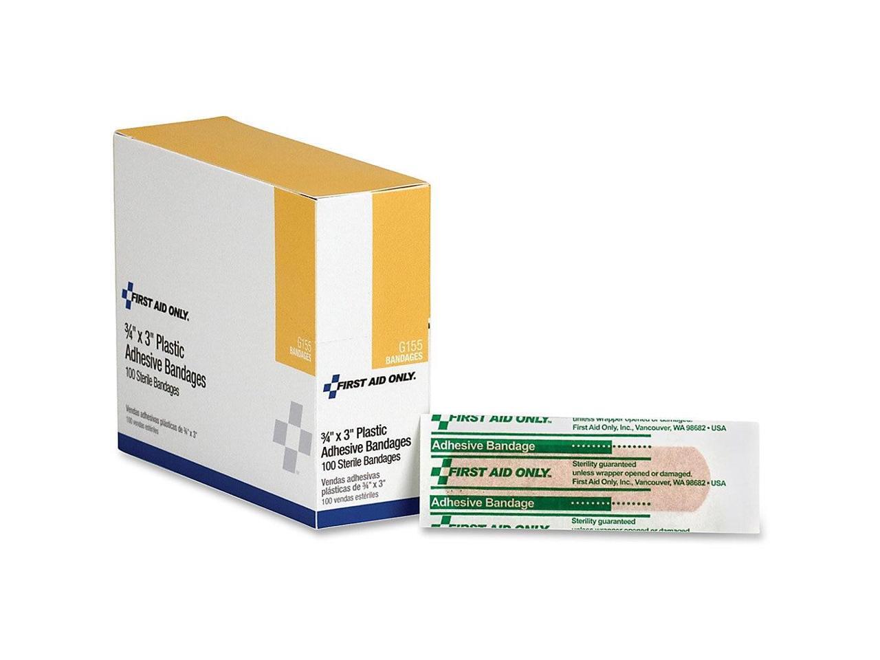 Adhesive Bandage, Plastic, 3/4x3In, PK100 FIRST AID ONLY G155