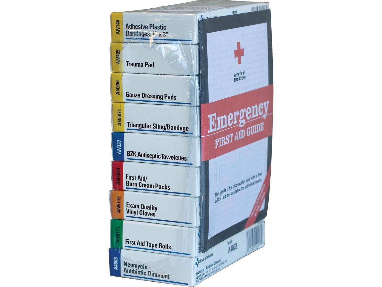 Contains the following: sixteen 1" x 3" adhesive plastic bandages, four 3" x 3" gauze dressing pads, 5" x 9" trauma pad, 40" triangular sling/bandage,...