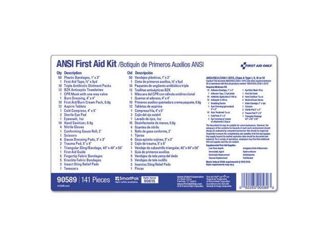 FIRST AID ONLY, INC. ANSI 2015 Compliant Class A Type I & II First Aid Ki...